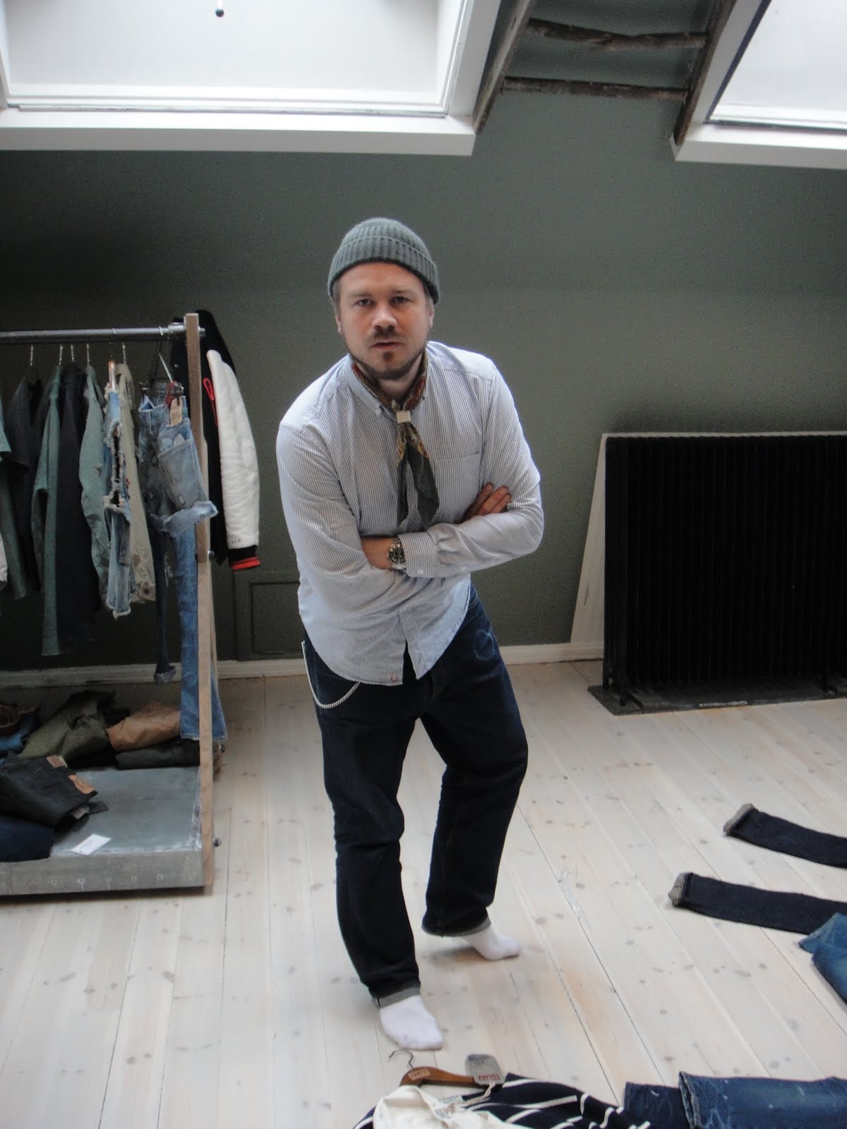 Levi’s Vintage Clothing. Eller Levi’s XX som det nu heter och som innehåller lite mer än bara LVC. Nils (inte på bild av någon anledning) visade stolt upp höstens kollektion och sitt nya fina showroom. Bli inte förvånad om inredningen på vår nya denim hörna kommer att likna detta…