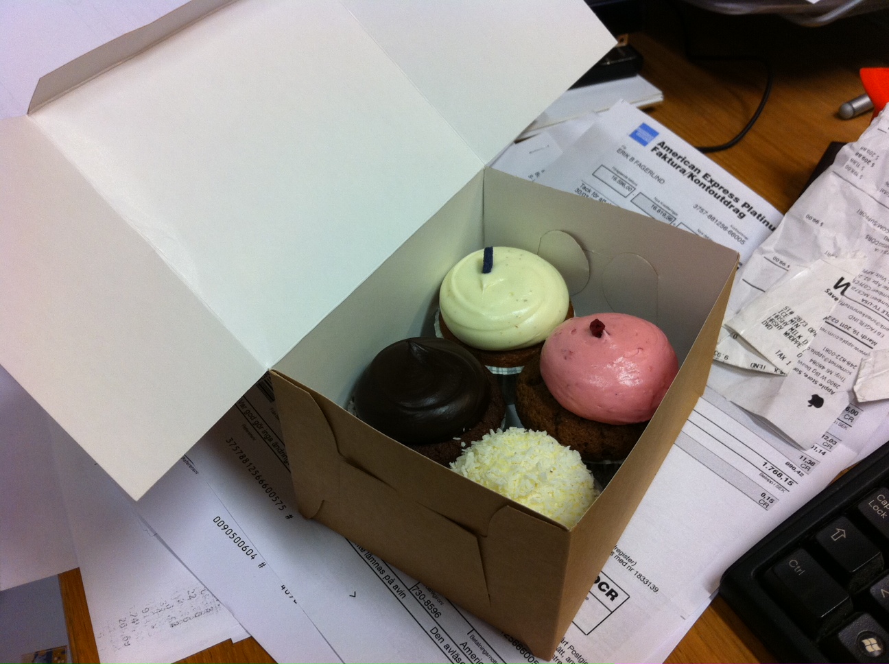 Ok, vem vill claima den här? Det kom ett bud med muffins från Cupcake Sthlm till Erik. Vi har ju två Erik, så vi vet inte riktigt vem dom är till. Eller varför. Men dom ser sjukt goda ut, så dom lär ätas upp innan dagen är slut.