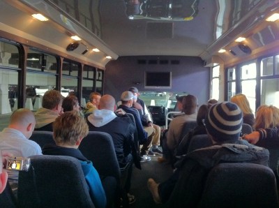 Det stoppade ju inte stämningen på bussen. Hannes var på ett sprulande humör som ni kan se